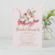 Arranjo floral vermelho com um pano de fundo e ilustração de cupcake fofo para o seu chá de panela. Procure na nossa loja mais opções de convite para brunch.