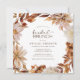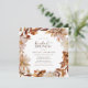 Convite de Brunch de Noiva de Outono Elegante. Estes convites de brunch de noiva quadrados elegantes apresentam folhas de laranja queimada e terracota pintadas à mão em aquarela, dálias creme e bege, e belas rosas de cor enferrujada em um fundo branco. Encontre itens correspondentes na Coleção Romance de Outono Branco.
