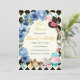 Alice no País das Maravilhas é uma história sobre uma garota que cai em um buraco de coelho e se encontra em um mundo incrível e confuso. Alice é a protagonista desta história e ela encontra todos os tipos de personagens estranhos como o Chapeleiro Louco, a Rainha de Copas, Tweedledum e Tweedledee. Este design é perfeito para o seu brunch. Este design apresenta lindas flores azuis, um bolo azul, um chapéu de chapeleiro louco, vinho, chá e um relógio.