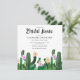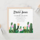 Este design de convite é baseado em cactos verdes com flores laranja claro e rosa que dão ao design uma estrutura Mexicana. Um pouco engraçado e Elegante. Este modelo de convite de chá de noiva combina duas fontes diferentes e seus tamanhos diferentes para uma aparência mais dinâmica.