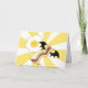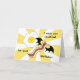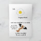 Cartão de saudação engraçado e bobo com um bacon kawaii vampiro com asas de morcego e uma pobre vítima de ovo com feridas de picada sobre um fundo amarelo pálido. Falado como convite para o café da manhã de aniversário. Todo texto pode ser personalizado ou removido.