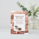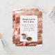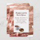 O convite para o café da manhã do casamento feito com uma fotografia de fatias de bacon cru, como fundo. Gráficos de uma área de texto branco, no meio, são decorados com uma xícara de café e uma rosquinha de chocolate. O texto em marrom escuro está pronto para personalizar o café da manhã de casamento. Excelente como um recinto com seus convites de casamento.