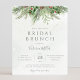 Convites de café da noiva acessíveis e lindos com ilustrações de aquarela botânica pintadas à mão de greenery de inverno, galhos de pinheiro e abeto, cones e frutos de azevinho. Escolha perfeita para casamentos com tema de inverno ou Natal.