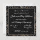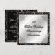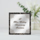 Um design de imagens Digitalbcon com um tema de cores preto e prata com imagens personalizadas, formas, padrões, estilos e fontes neste cartão de convite de aniversário de prata único. Ele vem completo com um design complementar no verso com letras de texto personalizáveis para se adequar à sua ocasião especial.