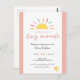Traga um toque de alegria para os convites do seu chá de bebê com este convite fofo! Texto: "Waiting on a tiny miracle". Apresenta um sol de desenho animado e estrelas e uma paleta de cores vibrantes em amarelo e rosa com tipografia elegante. Este design moderno é fácil de personalizar com os detalhes da festa.