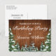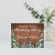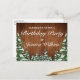 Convite de cartão postal para festa de aniversário. Madeira marrom rústica, fundo nevado e floresta coberta de neve. Estilo aconchegante e vintage do campo. Mais itens estão disponíveis neste estilo em nossa loja. Você pode editar ainda mais o design, alterar cores, fontes e adicionar texto extra clicando no link "personalizar ainda mais".