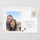 Compartilhe suas notícias emocionais com estilo com este cartão postal moderno de Save the Date com foto. Com um layout de foto personalizado, fontes de script elegantes e detalhes de coração minimalistas, este anúncio de casamento é perfeito para casais que desejam um toque chique e pessoal. Impresso em papel cartão de alta qualidade, é ideal para enviar por correio para amigos e familiares. Personalize com seus nomes, data de casamento e local para um souvenir atemporal.