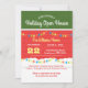 Este Convite de Casa Aberta personalizado apresenta uma fachada festiva da casa de férias na frente e todos os detalhes do seu evento no verso. Todo o texto é personalizável para dizer exatamente o que você deseja. Personalize a porta com qualquer nome ou número da casa. Ótimo para Casas Abert as de Fim de Ano, Inaugurações de Casas ou também para Corretores de Imóveis.