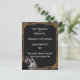 Convite personalizado para casamento em prata e uma armação de ouro em preto com um envelope preto