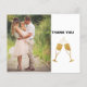 Expresse sua gratidão em estilo com este obrigado elegante, perfeito para casamentos ou ocasiões especiais. Apresentando uma fotografia romântica de uma noiva e noiva junto a uma espumante design de torrada de champanhe, esta carta captura a alegria de sua celebração. Totalmente personalizável com seus nomes e mensagens, é uma bela maneira de obrigado seus convidados para compartilhar em seu dia especial."