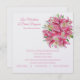 Este convite para o casamento é mostrado em um fundo do Shimmer da Pérola Branca com um layout moderno. Impressão de arte das flores rosa. Texto em cor rosa. Personalize este item, retirando o texto do exemplo e colocando suas informações nele. Imagem de ações.