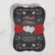 Este romântico e dramático convite de casamento em forma de colchete floral preto e prateado tem uma IMPRESSÃO em papel vermelho, um par de diamante IMPRESSO e brilho juntou corações de joias e aparência metálica prateada e flores vermelhas. O verso personalizável na frente diz, "Duas vidas, dois corações, unidos em amizade, Unidos para sempre no amor". ****POR FAVOR, OBSERVE que tudo será impressão como aparece no seu monitor; portanto, se você tiver problemas de digitação, alinhamento ou dimensionamento, entre em contato comigo para obter ajuda ANTES de solicitar. Não posso fazer nada quando o pedido for feito com Zazzle. Se precisar de outros itens correspondentes, envie um e-mail para niteowlstudio@gmail.com.