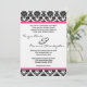 Convite de Casamento 5x7 Preto Damask e Linho Rosa
