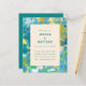 Abstrato Moderno Único Orçamento Tinta Tinta Turiquoise Azul e Convite Dourado para Casamento
