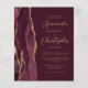 A borda esquerda deste elegante convite de casamento moderno mostra uma borda de água borrifada, cortada com falsa brilho dourado. O texto personalizável combina um script dourado e fontes sans serif em um fundo burgundy. O lado inverso apresenta uma burgundy e uma design de agata dourada.