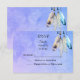 Um convite de casamento em aquarela. Um design em aquarela com quatro penas delicadas e encorpadas juntas penduradas na parte superior. O fundo é uma textura de aquarela roxa azulada suave. Um motivo tribal hippie bobo com um sentimento nativo americano.