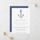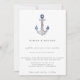 Belo convite de casamento com âncora com corda rústica aquarela e padrão de nó náutico azul marinho, tema náutico.