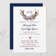 Design romântico, elegante, com galhadas embelezadas com cor d'água azul poeirento, buquê de flores rosa, divisor maravilhoso e atrás um fundo azul marinho. Use a ferramenta Personalizar para adicionar suas informações. Para encontrar itens, por favor, visite minha Coleção de Flores de Rosa Azul Dusty.
