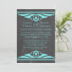 Convocação de Casamento Deco Chalkboard Elegante e chic com textura de chalkboard em moda e um par de bordas de turquesa art deco. Este adorável convite para o casamento é perfeito para um casamento temático de arte deco de 1920. Fácil de personalizar, simplesmente adicione seus detalhes de casamento. Clique em "Personalizar" para encontrar opções adicionais de personalização.