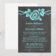 Convite para casamentos de Rosa doce e bonito em turquesa com um rosa adorável em uma vinha em um quadro de aparência. Este design elegante é perfeito para um casamento de primavera ou verão. Fácil de personalizar, basta adicionar os detalhes do casamento nos campos de texto fornecidos. Clique em "Personalizar" para encontrar mais opções de personalização.