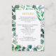 Este cartão de inclusão de casamento correspondente é projetado para se coordenar perfeitamente com o conjunto de convites, apresentando uma delicada obra de arte em aquarela de eucalipto. Perfeito para compartilhar detalhes importantes do casamento, como acomodações, direções, informações de recepção ou site de casamento, este cartão de inclusão adiciona um visual polido e coeso à sua papelaria. Seu design botânico atemporal complementa uma variedade de estilos de casamento, desde jardim e rústico até moderno e clássico.