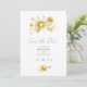 Este cartão de aviso de casamento boêmio alegre com girassol amarelo em aquarela apresenta girassóis elegantes em aquarela com folhagem verde clara entrelaçada sobre tipografia única. Um tema maravilhoso para casamentos de primavera, casamentos de verão e casamentos de outono e fácil de personalizar. Baseado em uma aquarela original de © Lisa Audit Art. Cerque-se de arte calorosa.
