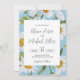 Lindo quadro de margaridas brancas em aquarela ao redor de uma escrita elegante é perfeito para o seu casamento de primavera e verão. O fundo azul destaca as belas flores silvestres. Simplesmente encantador.
