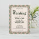 Celebre seu dia especial com este elegante convite de casamento inspirado no Art Déco. Este design apresenta um padrão geométrico sofisticado em tons de verde-sage e rosa empoeirado. A frente apresenta um layout limpo e clássico para os detalhes da cerimônia, enquanto a parte traseira inclui um monograma elegante e um código QR funcional para fácil RSVP dos convidados e informações do evento. Perfeito para casais que buscam uma mistura de charme vintage e conveniência moderna. Modelo totalmente personalizável.