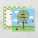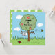 Um convite doce para celebrar o dia do casamento. O cartão apresenta uma cena colorida de jardim com uma macieira, um abelhão zumbindo em volta e uma joaninha correndo pelo chão.