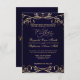 Convite de casamento com a fronteira dourada sobre fundo azul real, dê uma impressão elegante e glamour para convite de casamento.
