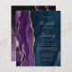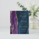 Este elegante convite de casamento moderno apresenta uma cor d'água púrpura, design, aparada com uma falsa brilha dourada. O texto personalizável combina manuscrito dourado, fontes em copperplate e itálico em um fundo de marinho azul de aquarela. O verso apresenta uma design de agata roxa e dourada coordenadora.