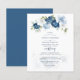 Cartão postal de Convite para Casamento Floral Azul Dusty Botânico Moderno de Orçamento. Personalize este Convite de Casamento Floral Azul Moderno com Dusty Botânico clicando no botão "Personalizar" acima. A carta apresenta um moderno e elegante chic com flores azuis empoeiradas, de cor branca, azul claro e verde-oliva. TIP: Excelente para festas surpresa, chás de fraldas, recepções de casamento e festas de aposentadoria.