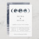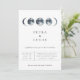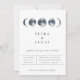 Fases elegantes da lua de aquarela em azul marinho, convite de casamento. A parte traseira da placa corresponde à lavagem da cor da água azul do marinho. Os estilos de fonte e as cores podem ser personalizados.