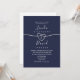 Experimente a elegância do eterno com o nosso convite de casamento azul e marinho minimalista. Apresentando uma simples escrita caligráfica e um coração falso de corda prateada, este convite expele sofisticação e charme. Coloque um pano de fundo de azul rico e marinho, ele define o tom perfeito para seu dia especial. Convide seus entes queridos para comemorar com esta design, elegante e na moda, onde cada detalhe fala muito sobre a beleza de sua história de amor.