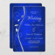 Este belo convite de casamento em tons de prata e azul real brilhante dará um sentido de elegância ao seu casamento! A frente esquerda tem uma rodosa prateada adornada com algumas folhas. Seu texto de casamento está em prata à direita da imagem. Tudo é colocado sobre um fundo de gradiente azul que parece quase brilhar. A parte de trás do convite tem o mesmo plano de fundo azul real. Elegante para qualquer estação! Há cartões RSVP e outros produtos de casamento na nossa loja.