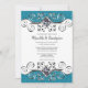 Design apresenta o design brilhante azul-azul-turquesa com espirais prateados ornamentais e embelezamento de fotografia gemstone. Encontre itens correspondentes no nosso suite de casamento de cheio com este design elegante de brilho.