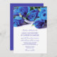 Convite do casamento em azul e no branco com rosas e as pias batismais elegantes.