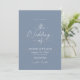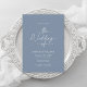Este elegante convite de casamento azul e empoeirado apresenta uma frente limpa e minimalista com tipografia moderna, perfeita para estilos de casamento românticos ou clássicos. A parte traseira inclui um código de QR digitalizável que leva diretamente ao seu registro de presentes, fazer que seja fácil para os hóspedes encontrar e comprar seus presentes preferidos. Um toque na moda e pensativo na sua suíte de casamento.