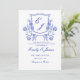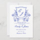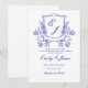 convite de casamento azul Floral Crest vitoriano