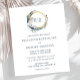Este design de casamento boho apresenta os monogramas do noivo e da noiva emoldurados por uma grinalda em aquarela que inclui uma lua crescente azul índigo, grama de pampas, flores brancas e um círculo de falso folheado a ouro. Personalize o texto azul escuro com os nomes do casal e detalhes do casamento. O verso é uma tonalidade sólida de azul escuro.