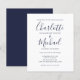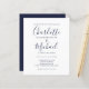 Com nomes no estilo de assinatura, este convite de casamento azul marinho e branco elegante e econômico pode ser personalizado com suas informações em letras elegantes. Criado por Thisisnotme©