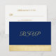Cartões de resposta de casamento RSVP dourados e azul-marinho elegantes e modernos. A cor do fundo pode ser alterada. Modelos editáveis - adicione seu texto. Entre em contato com o designer para outras variações. Perfeito para a Coleção de Casamentos NÁUTICOS.