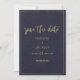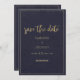 Convite de casamento azul marinho elegante e floral dourado francês em renda inclui um design floral desgastado com tipografia manuscrita dourada falsa impressa. Este convite de casamento Save The Date é a impressão perfeita para o evento de casamento de qualquer noiva e noivo. Personalize este design com seus detalhes e monograma inicial. Todos os desenhos são impressos.