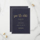 Convite de casamento azul marinho dourado floral e