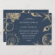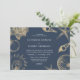 Convite de casamento azul ouro de praia
