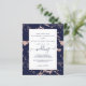 Convite de casamento Azul Rosa Dourado Marble Mari
