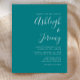 Este simples convite de casamento moderno apresenta um texto branco sobre um fundo azul-turquesa. Adicione os nomes da noiva e do noivo na caligrafia de escrita manual do na moda e os detalhes na fonte sans serif. O reverso é uma sombra de turquesa sólida.