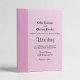 Um rosa corado suave combinado com um rosa mauve mais profundo, criando um contraste quente e romântico. O texto é estilizado em burgundy rico, misturando uma fonte serifada limpa para os detalhes formais com uma escrita fluida para os nomes e títulos.