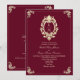 Convite de casamento barroco elegante em bordô e dourado com crista de monograma ornamentada na frente e código QR moderno para confirmação de presença no verso. Uma mistura perfeita de luxo e conveniência, este convite é ideal para casamentos formais. Personalize facilmente com seus nomes, data e site do casamento. Os convidados podem confirmar presença rapidamente digitalizando o código QR, mantendo seu evento organizado com estilo.