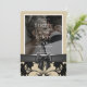 O convite de casamento beige & arco preto preto preto, padrão floral azul tradicional personalizado cartão de convite para script de fotos. Veja o resto do casamento elegante e da coleção de decorações.